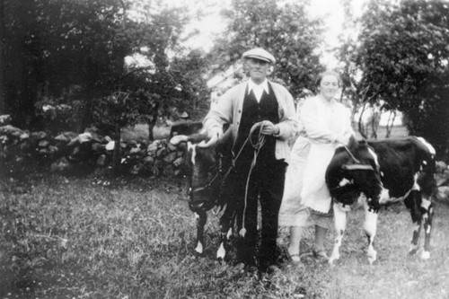 Man och kvinna med ko